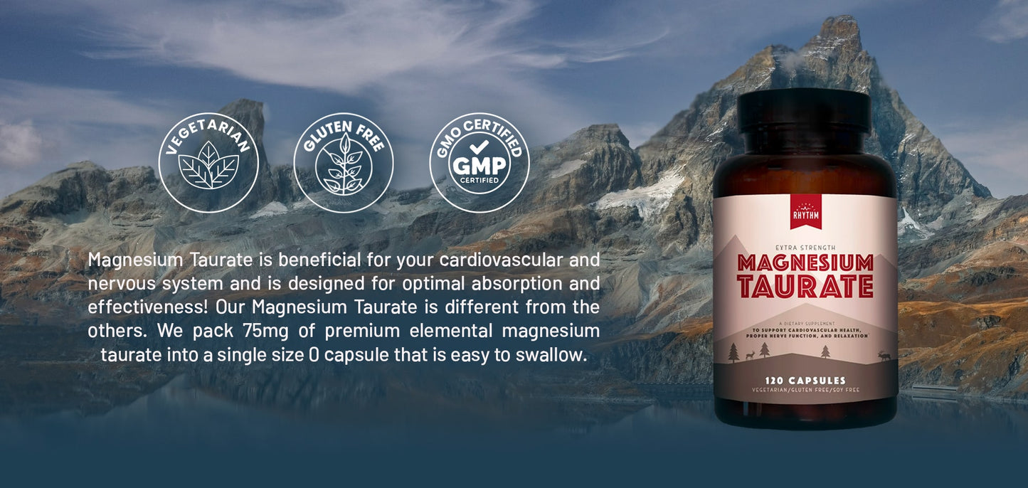 Magnesium Taurate is beneficial for your cardiovascular and nervous system and is designed for optimal absorption and effectiveness! Our Magnesium Taurate is different than the others. We pack 75mg of premium elemental magnesium taurate into a single size 0 capsule that is easy to swallow. Our capsules are also vegetarian, non-gmo, and gluten free. Each batch is tested for heavy metals to ensure that you get the very best magnesium possible.